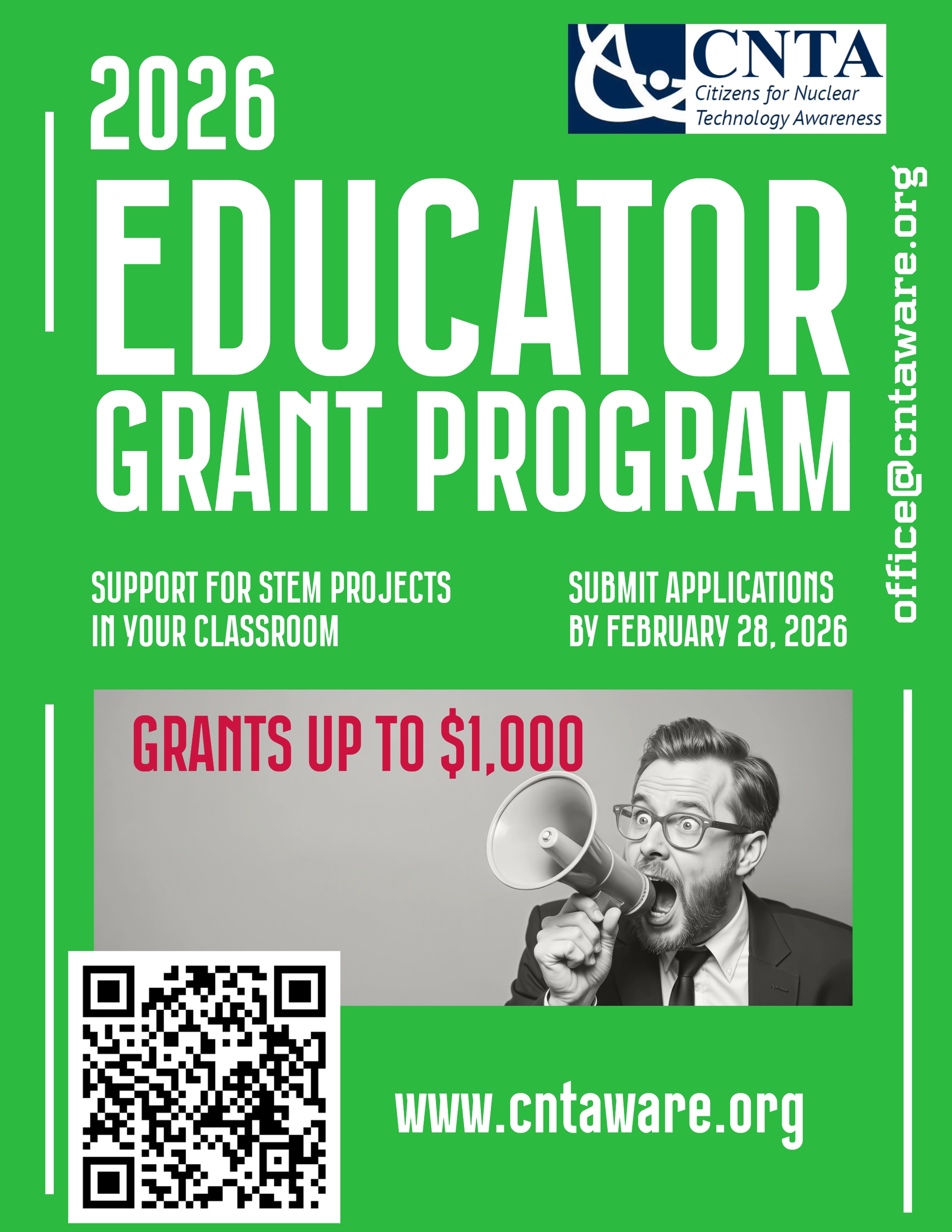 Citizens for Nuclear Technology Awareness is a nonprofit organization that advocates for all aspects of nuclear technologies. Our mission is to educate the public by providing objective information on the value of nuclear technology with respect to our health, economy, environment and national security.